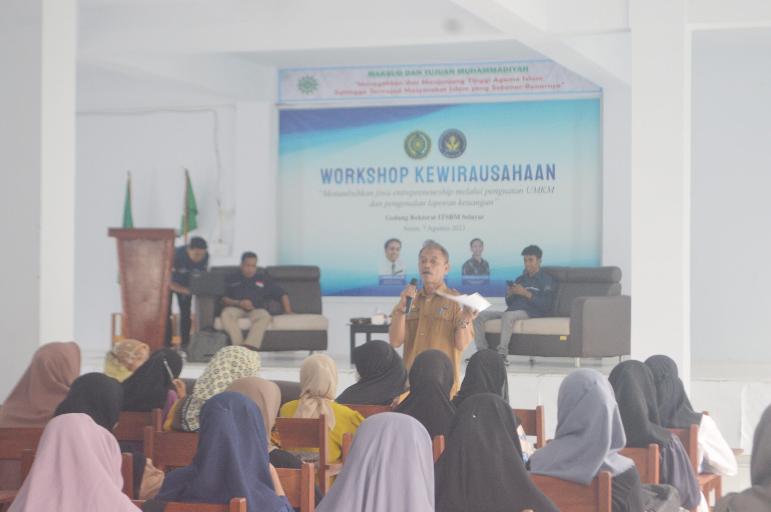 Kegiatan ini dihadiri oleh mahasiswa dan calon mahasiswa baru ITSBM Selayar, Masyarakat umum dan pelaku UMKM di Kabupaten kepulauan serta. Workshop Kewirausahaan dibuka langsung oleh Wakil Rektor ITSBM Selayar yaitu Muhammad Ihsan Maro ,S.Ag.,M.Si. dan dipandu langsung oleh Bondo sebagai salah satu Mahasiswa Program Studi Kewirausahaan serta dihadiri oleh beberapa narasumber yaitu;